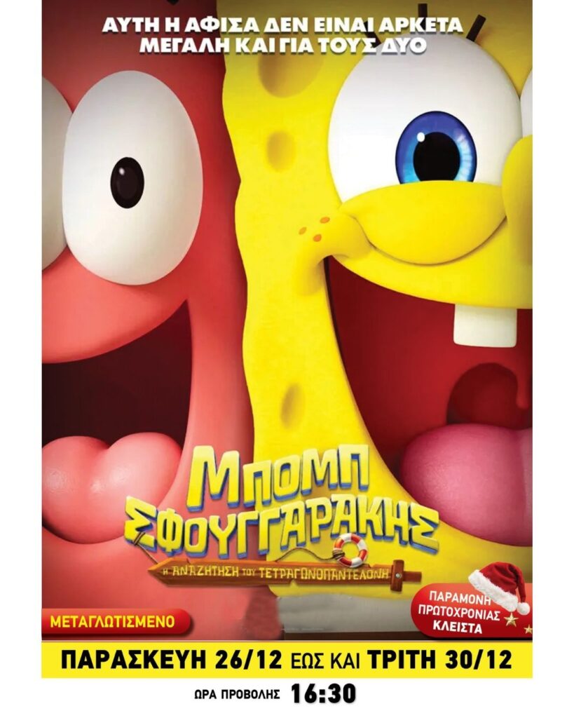 Ο Μπομπ Σφουγγαράκης και οι φίλοι του σαλπάρουν για την μεγαλύτερη κινηματογραφική εμπειρία… τη νέα ταινία ΜΠΟΜΠ ΣΦΟΥΓΓΑΡΑΚΗΣ: Η ΑΝΑΖΗΤΗΣΗ ΤΟΥ ΤΕΤΡΑΓΩΝΟΠΑΝΤΕΛΟΝΗ! Απελπισμένος να δείξει πόσο σημαντικός είναι, ο Μπομπ Σφουγγαράκης πρέπει να αποδείξει την αξία του στον κύριο Καβούρη, ακολουθώντας τον Ιπτάμενο Ολλανδό σε μια πειρατική περιπέτεια που τον μεταφέρει στα βαθύτερα βάθη της βαθιάς θάλασσας, εκεί που κανένα Σφουγγάρι δεν έχει πάει ποτέ!